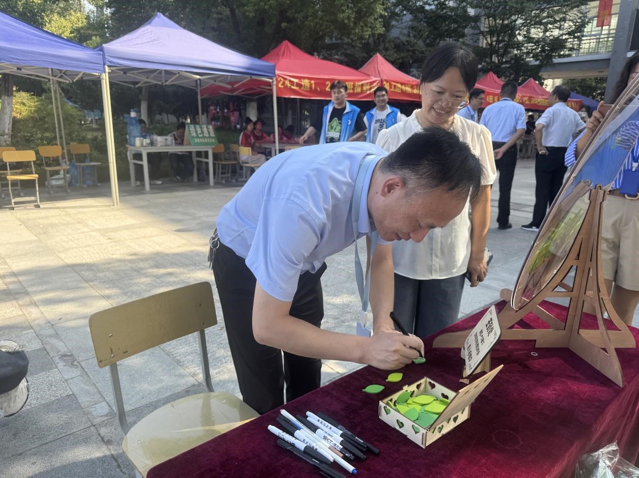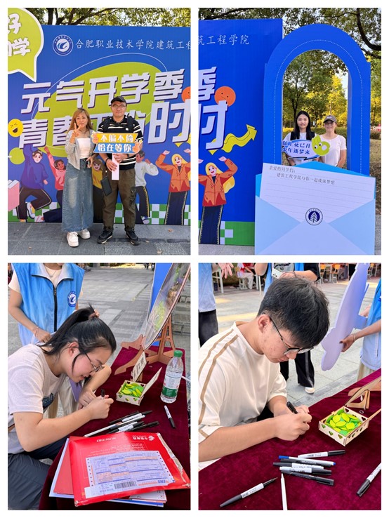 举起气球和家长拍下在合职的第一张照片,取一片树叶写下对未来的自己的期许,这些仪式感十足的打卡活动不仅让新生和家长感受到了学校的温暖和关怀,也让他们对即将开始的大学生活充满了期待和憧憬。