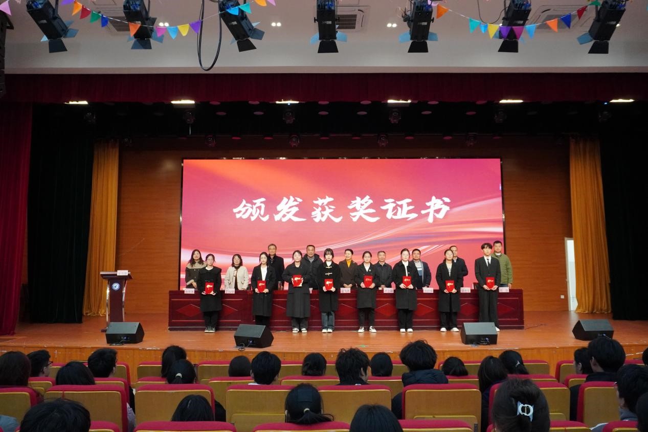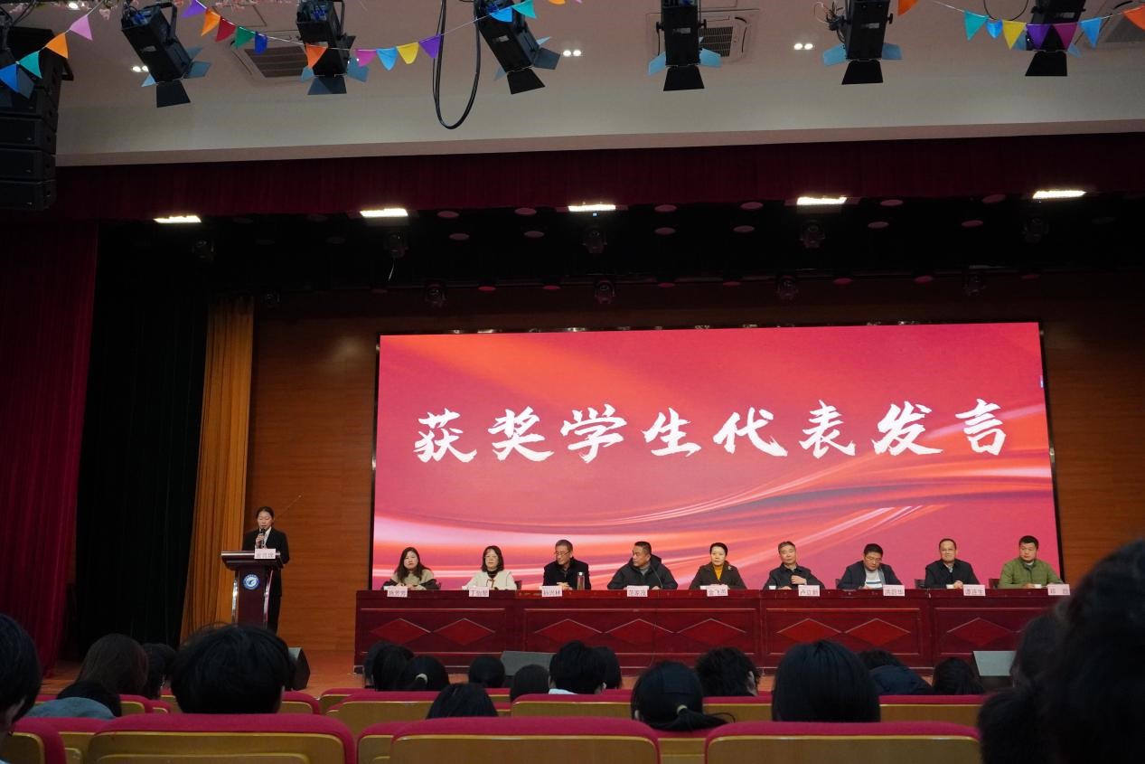 孙兴林宣读了2023-2024学年度省价协弘徽奖学金获奖名单,获奖同学分批上台领奖,出席领导为他们颁发荣誉证书。一个个闪光的名字背后,是学子们不懈的努力和可喜的成绩。这一刻,不仅是对获奖同学的肯定与鼓励,更是对所有同学的一种激励和鞭策。