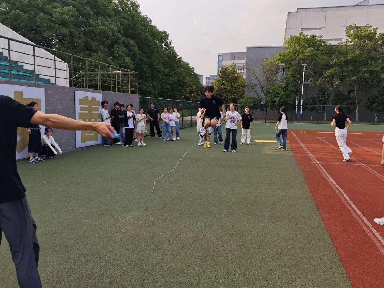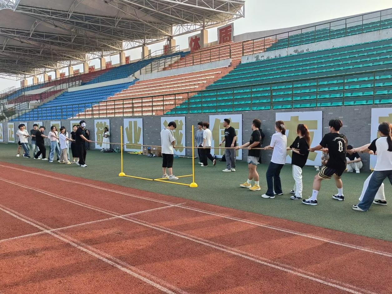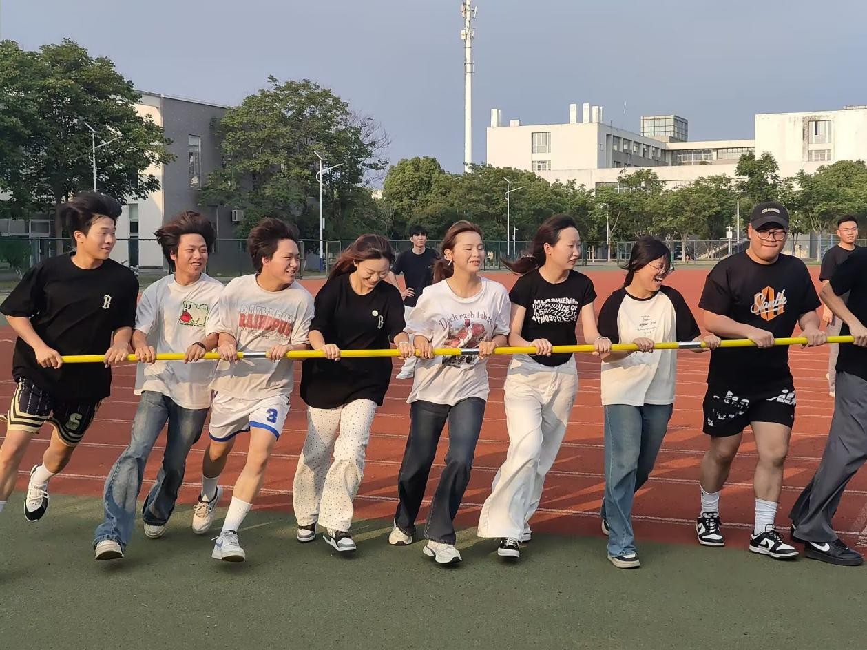 本次趣味运动会设置了四个兼具趣味性与挑战性的项目。“趣味拔河”在传统规则中融入策略协作,参赛队伍齐心协力,呐喊声此起彼伏;“欢乐旋风跑”要求队员挽手绕桩冲刺,考验默契与平衡力;“协力竞走”中,团队成员在一根布带的固定下齐头并进,生动诠释了“步调一致”的重要性;压轴项目“跳长绳”则以连贯的节奏和灵活的配合将活动推向高潮。
