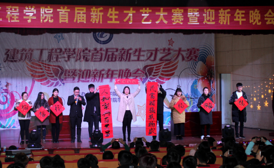 通过这场新生才艺大赛,向我院师生展现2017级新生飞扬的青春和生活的激情,发掘出了我院的文艺人才,促进了建工学院晗瑶文艺团的发展,使他们的才艺得到进一步的锻炼和展示。同时,此次晚会让全体师生感受到2018新年的喜庆,为同学们的大学生活增添一曲崭新的乐章。赛后,学院领导老师和全体演职人员合影留念。