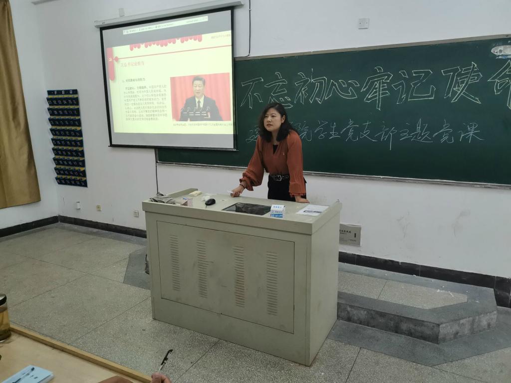 根据学校“不忘初心、牢记使命”主题教育工作部署和yl6809永利党总支工作安排,10月23日下午两点三十分yl6809永利学生党支部在教学楼B201教室开展主题党课活动。学生党支部书记施芳芳以“守初心、担使命”为主题为支部全体党员和入党积极分子讲授了一堂形象生动、令人印象深刻的党课。院党总支书记宁业群以普通党员身份参加了支部的学习活动。