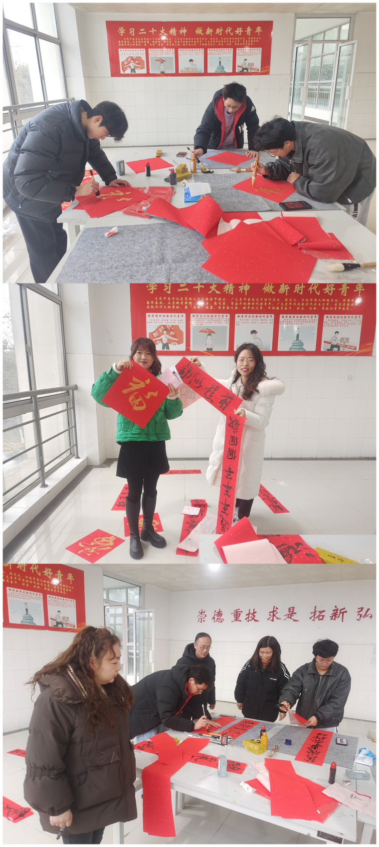 一幅幅春联,一个个福字,书写的是美好的新年新希望。此次活动,不仅弘扬和传播了中华优秀传统文化,也让大家感受到建工学院师生间的温暖情谊,增强了学院的凝聚力、向心力,营造了共迎佳节的喜庆氛围。(供稿:昌逸文 初审:杨靖 审核:施芳芳)