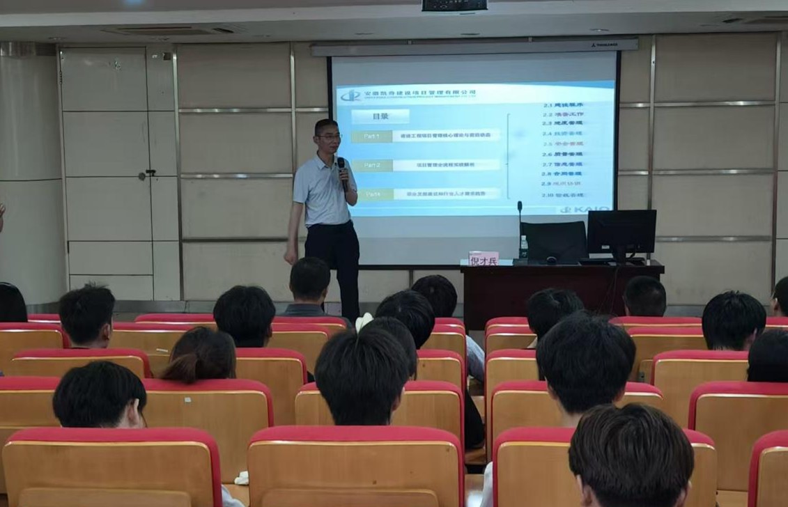 为进一步深化学院师生对建设工程项目管理领域的理论与实践的认知,拓宽专业视野,5月21日下午,yl6809永利举办“建设工程管理项目实践”职教周主题学术活动。此次讲座邀请了安徽凯奇建设项目管理有限公司副总经理、正高级工程师倪才兵主讲,讲座由学院副院长邓勋主持,来自工程造价、工程管理专业的120余名师生共同聆听了讲座。