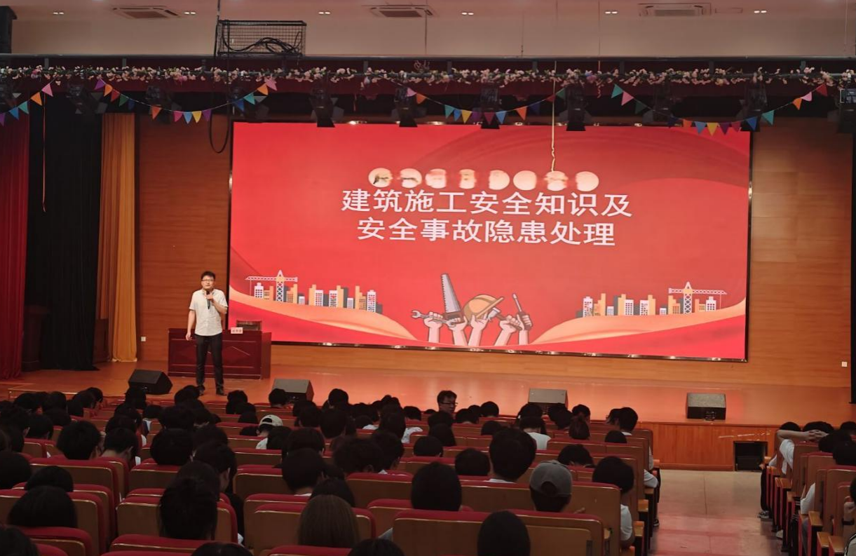 胡秀俊以建筑施工现场安全为主线,强调了安全在建筑施工领域中的核心地位,任何一个小的疏忽都可能引发严重后果,不仅关乎个人生命健康与家庭幸福,更直接影响到整个工程项目的顺利推进以及企业的社会声誉。他提醒同学们在未来的实习工作中,保障安全是首要任务,也是职业发展的基石。