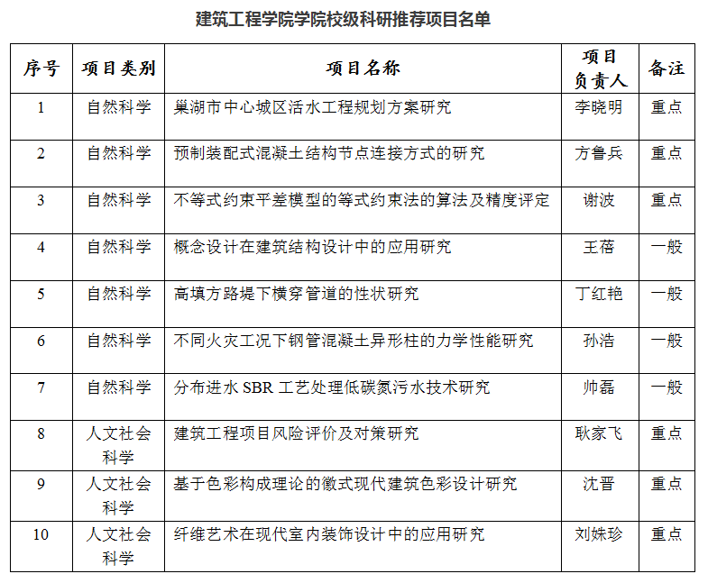 根据《永利集团yl6809关于开展2019年度校级科研项目申报工作的通知》(合职院教〔2018〕40号)文件精神,yl6809永利积极组织学术委员会成员对教师申报的2019年度高校自然科学和人文社科研究项目进行了评审。确定立项推荐项目公示如下: