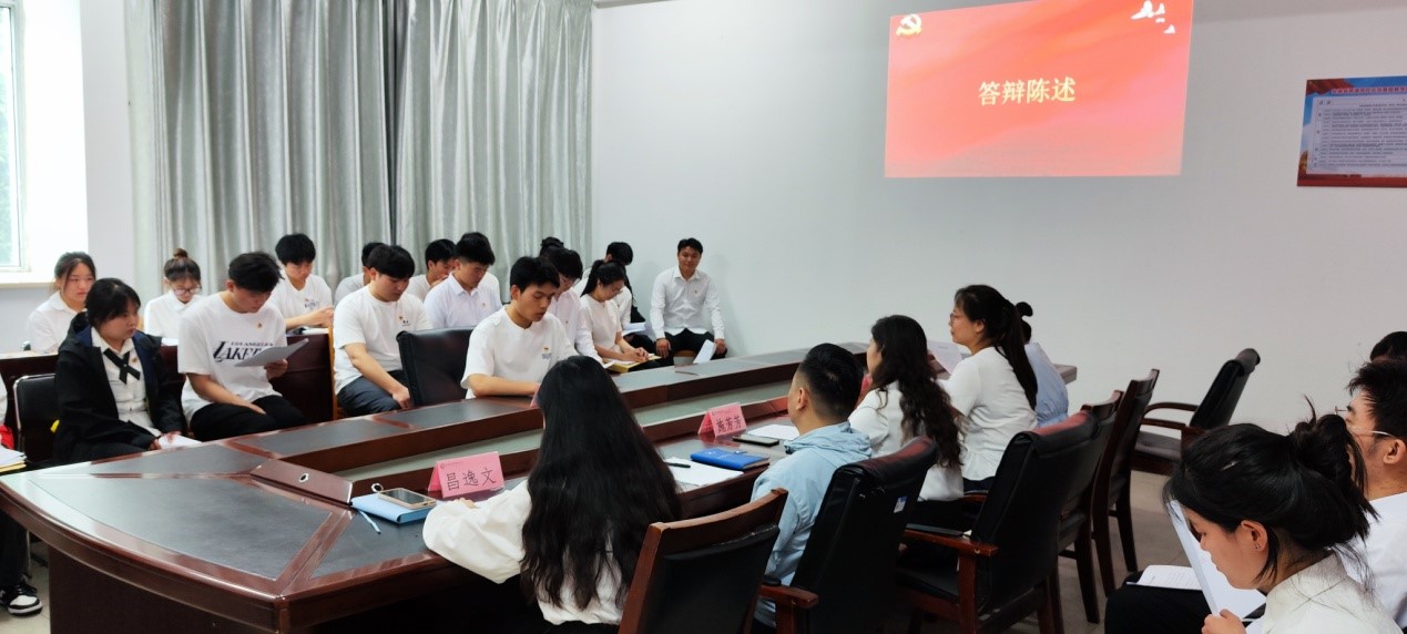 答辩会按照答辩陈述、现场提问和现场点评三个环节依次开展。首先,学生预备党员依次围绕个人情况、入党动机或预备期表现、模范带头作用、不足和改进之处进行答辩陈述。随后,答辩考评小组成员先后从党的基本理论、自身发展等方面对预备党员进行提问,各位预备党员也在充分准备和思考后对所提问题做出回答。最后,答辩考评小组成员对即将转正的预备党员就预备期的综合表现进行了点评,同时对每个人的不足之处提出了宝贵建议,拟转正预备党员都虚心接纳并表示日后定会改正。