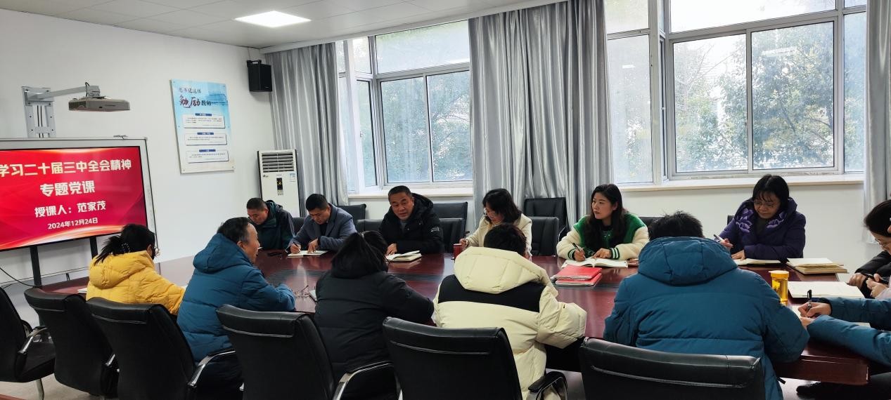 为深入贯彻落实党的二十届三中全会精神,进一步提高党员同志的思想认识和政治站位,2024年12月24日下午,yl6809永利举办了“学习贯彻党的二十届三中全会精神”专题党课活动。本次活动特邀校党委委员、副校长范家茂授课。学院党政班子、各支部书记、委员和科室负责人参加了活动。