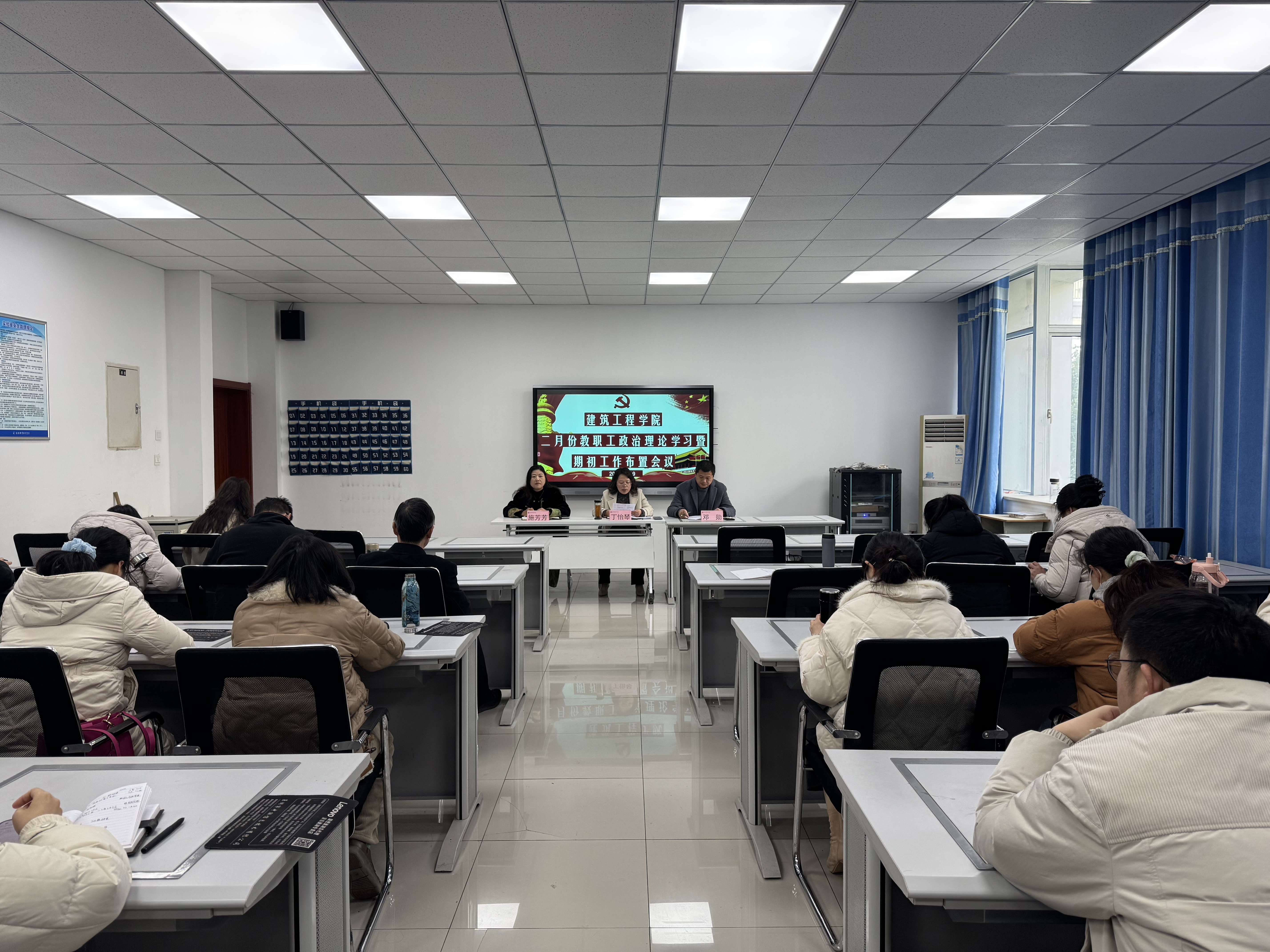 岁序更新日,万物欣荣时。2月19日下午,yl6809永利在建工楼304会议室召开二月份教职工政治理论学习暨期初工作布置会议,学院党政班子及全体教职工参加会议,会议由学院党总支副书记(主持工作)丁怡琴主持。