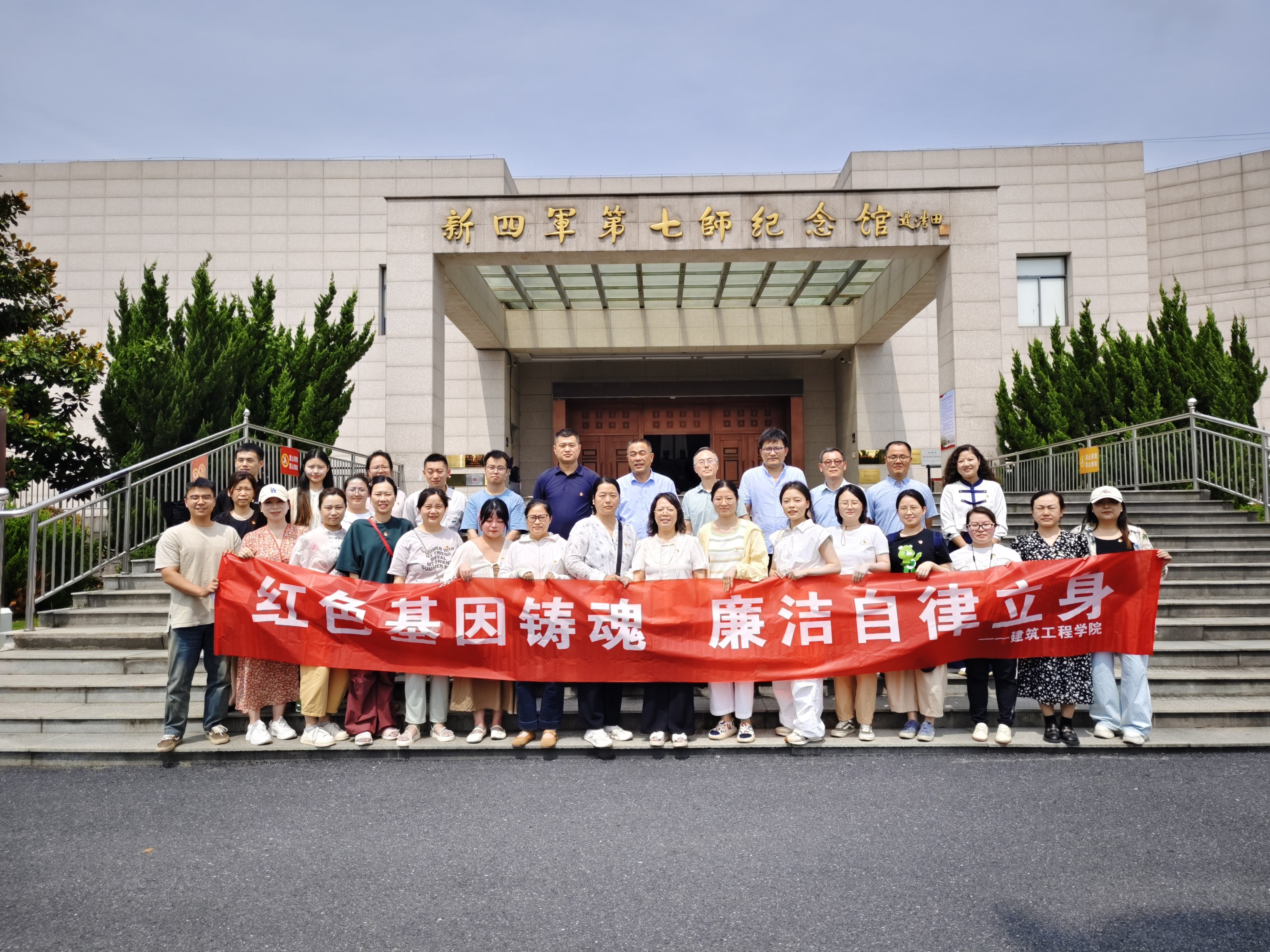 为深入贯彻中央八项规定精神学习教育,筑牢教职工廉洁自律思想防线,6月18日,yl6809永利党总支组织全体教职工赴无为新四军第七师纪念馆,开展“红色基因铸魂 廉洁自律立身”主题教育活动。校党委委员、副校长范家茂参加了本次活动。