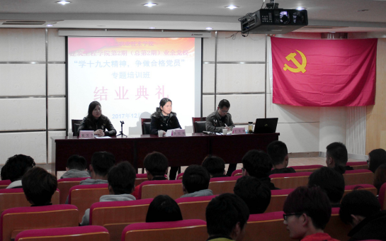 12月5日下午3:50在校图书馆1楼报告厅,举行了yl6809永利第2期业余党校“学十九大精神争做合格党员”专题培训班结业典礼。学院有关负责人、教师党员代表及第2期业余党校学员参加了结业典礼,典礼由党总支副书记王文俊同志主持。