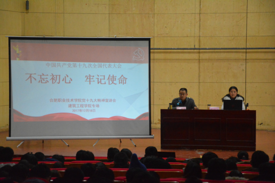 按照学校要求,本次讲座主要有五个部分内容:第一部分为党的十九大永利集团概况;第二部分为十九大报告重点内容解读;第三部分为青年兴则国家兴,青年强则国家强;第四部分为砥砺奋进的合职;第五部分为稳中求进的合职建工。