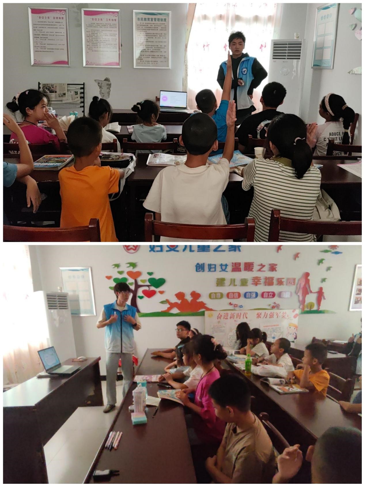 四天里,团队成员们围绕爱国主义教育、预防校园欺凌、防溺水、交通安全四个主题展开宣讲。过程中团队成员结合案例分析、课堂问答的方式,将爱国主义教育与小朋友们的日常生活紧密结合,培养他们的爱国主义情怀;结合情景剧表演向小朋友们讲解了校园欺凌的表现形式、危害以及如何预防和应对;播放防溺水卡通宣传短片,详细讲解了自救与互救的方法;用模拟场景和角色扮演的方式,向小朋友们展示如何正确过马路、识别交通信号灯等,让交通安全知识深深印在小朋友们的心中,在轻松愉快的氛围中掌握了实用的安全技能。宣讲之余,团队成员还帮助小朋友们进行作业辅导,为他们答疑解难。