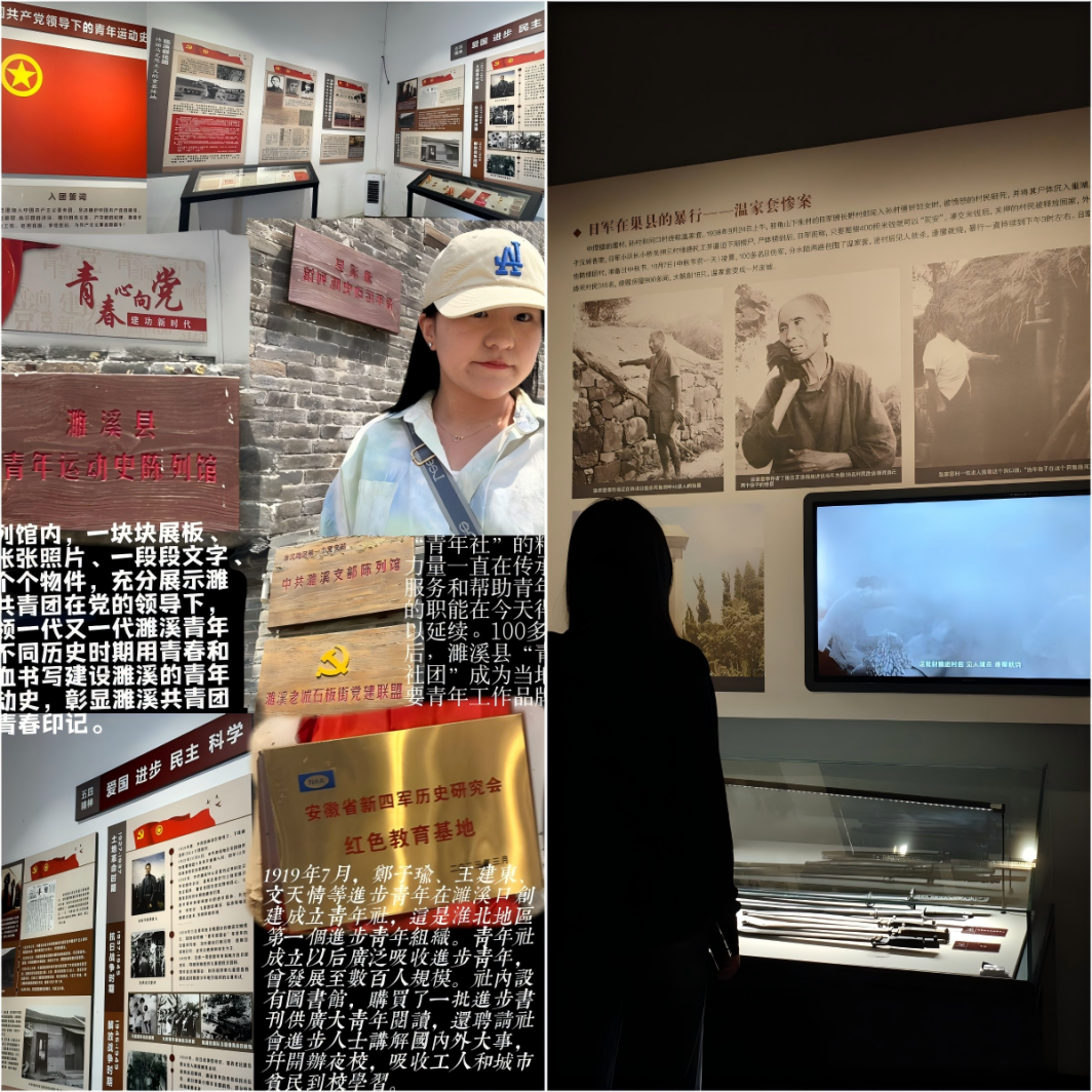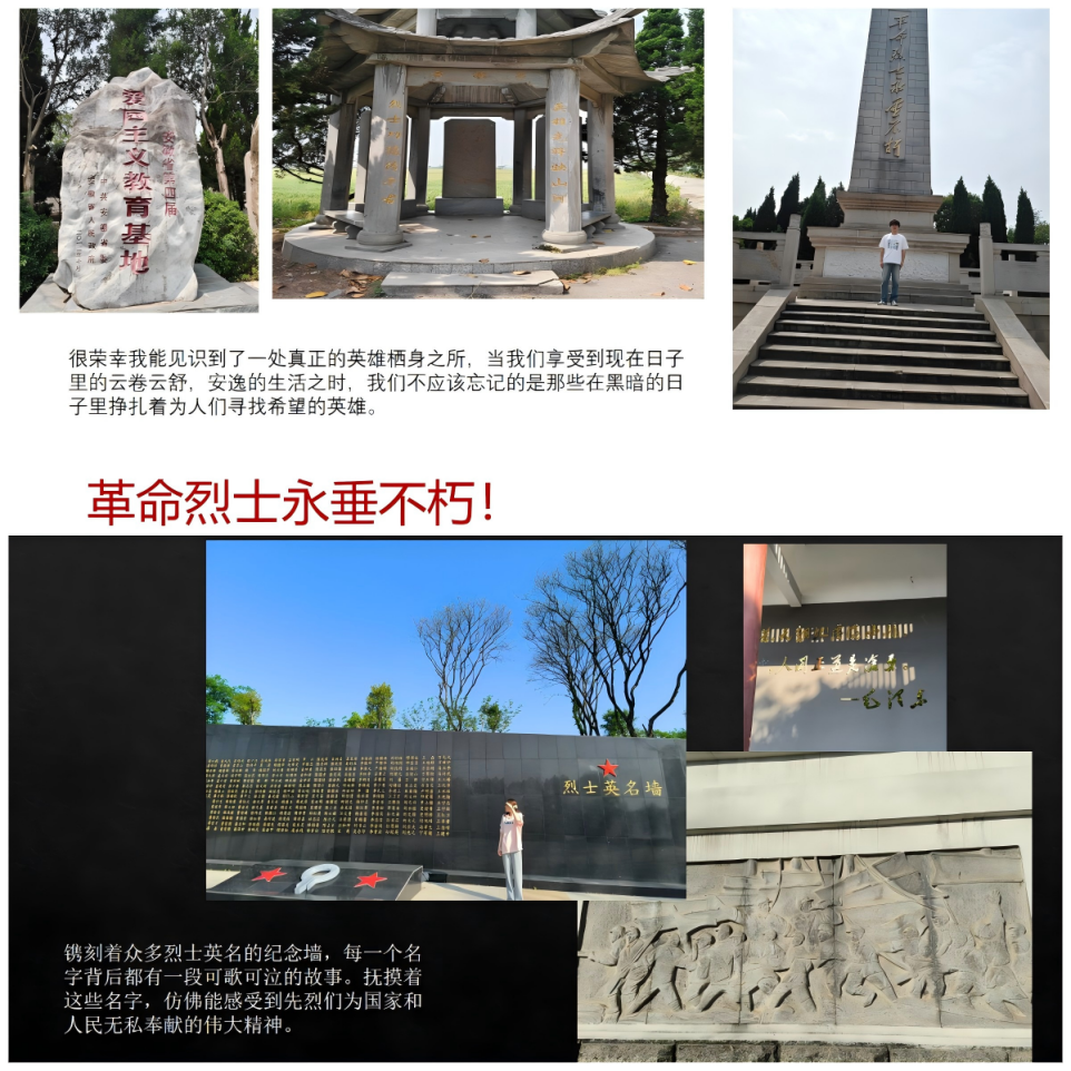 在探访过程中,同学们用相机或手机拍下红色地标的独特风貌,以精美的影像定格历史瞬间;同时,他们以细腻的笔触撰写文字,将自己的所见所闻、所思所感融入其中,生动地镌刻下岁月故事。来自24工造3班的闵荔同学在探访家乡的望江渡江战役纪念馆后,在镜头记录中,她说:“在五四青年节之际来此打卡,是一次对革命精神的深刻追寻,通过这次探访,我更加深刻地理解了今天的幸福生活来之不易,也更加坚定了传承红色精神的决心。”