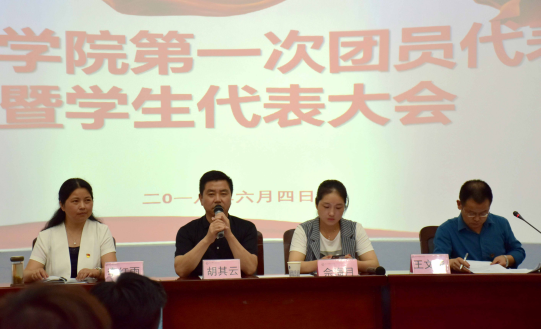 6月4日下午在图书馆二楼报告厅,我院召开共青团yl6809永利第一次代表大会暨学生代表大会。此次大会旨在进一步学习贯彻习总书记新时代思想和十九大精神,将理论学习知识落实到指导团学工作实践中,认真总结上一届团学组织的各项工作,选举出新一届团学组织干部。校党委副书记胡其云、团委书记佘海月应邀出席,院党总支书记李红雨、教师代表和107名团学代表齐聚一堂,共同参加本次大会。会议由院党总支副书记王文俊主持。
