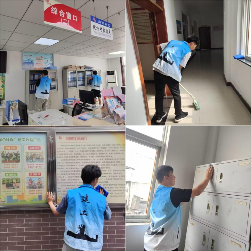 活动中,志愿者们分成五组,对社区会议室、宣传栏、党建长廊、楼道和卫生死角进行集中清理。他们不怕脏不怕累,工作细致,得到社区工作人员的一致好评。当志愿者们看到社区工作人员脸上的笑容和听到他们真诚的感谢时,因为天气带来的燥热感都被一扫而空,随之而来是内心充实的成就感。