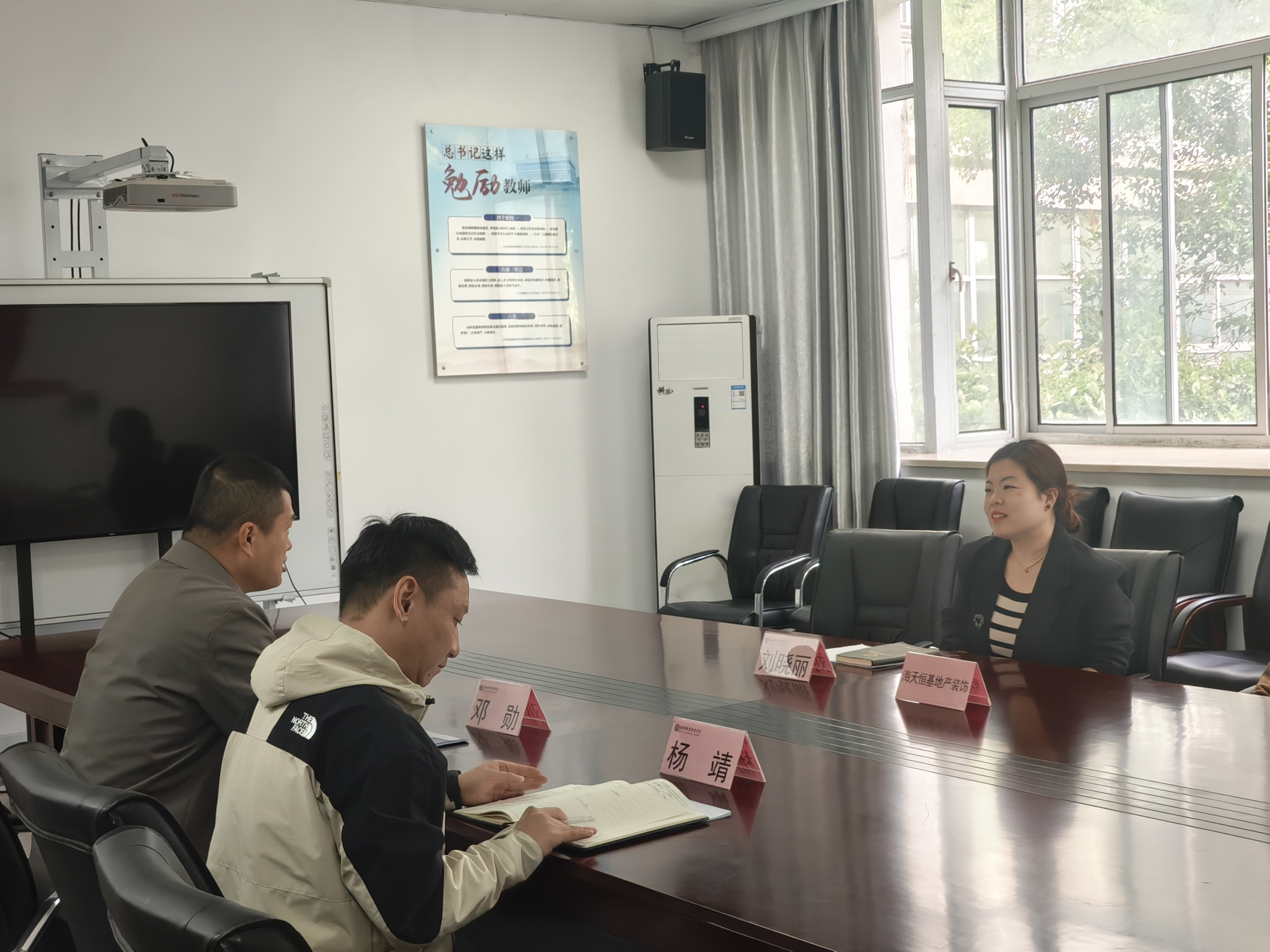 刘晓丽介绍了海天恒基装饰来校洽谈合作的背景和目的,对构建产教融合共同体、产业学院建设、专业人才培养、课程体系共建、兼职教师入校、合编教材、学生实习与就业培训模式等方面展开了详细介绍。她表示希望通过集团提供的资源支持,实现教学内容和课程体系的升级改革,提升学生的实践能力和就创业能力。