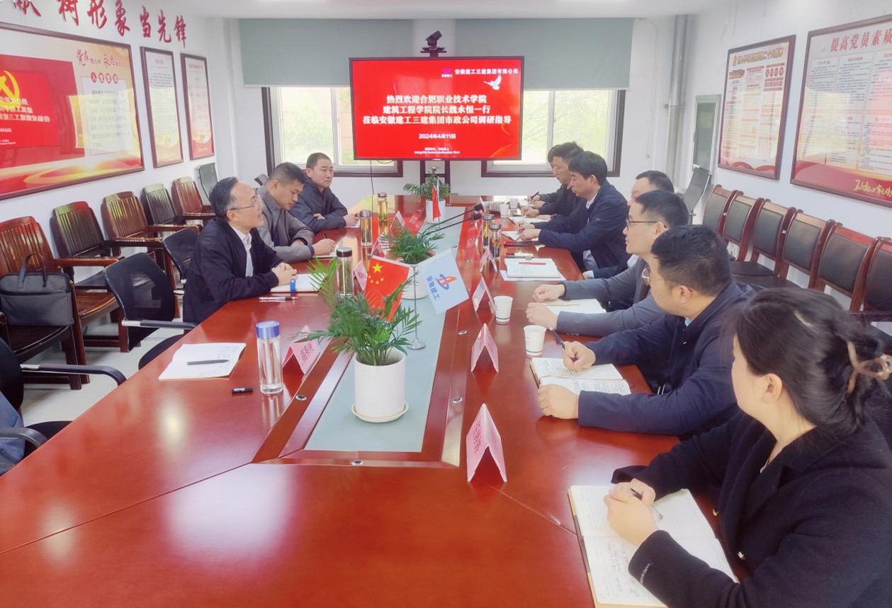 为全面了解企业用人需求,开拓更多就业岗位,助力学生高质量就业,4月11日,yl6809永利副院长(主持工作)魏永恒、副院长邓勋、教学办主任胡秀俊、工程造价教研室主任黄军福一行四人前往安徽建工三建集团市政公司开展访企拓岗活动。安徽建工三建集团市政公司经理王寅生、书记刘德连、副经理姚平、副经理洪文及相关部门负责人参加交流研讨。