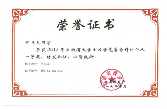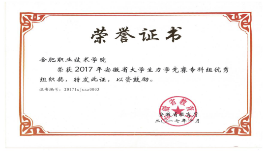 2017年11月18日,在合肥工业大学屯溪路校区召开第十一届全国周培源大学生力学竞赛安徽赛区竞赛暨2017年安徽省大学生力学竞赛总结会议。我校yl6809永利学子共获得10个奖次:永利集团yl6809获得专科组优秀组织奖,yl6809永利范家茂老师获得专科组优秀指导教师奖,2015级工程造价2班邹见见同学获得一等奖,另有7名同学获得三等奖。