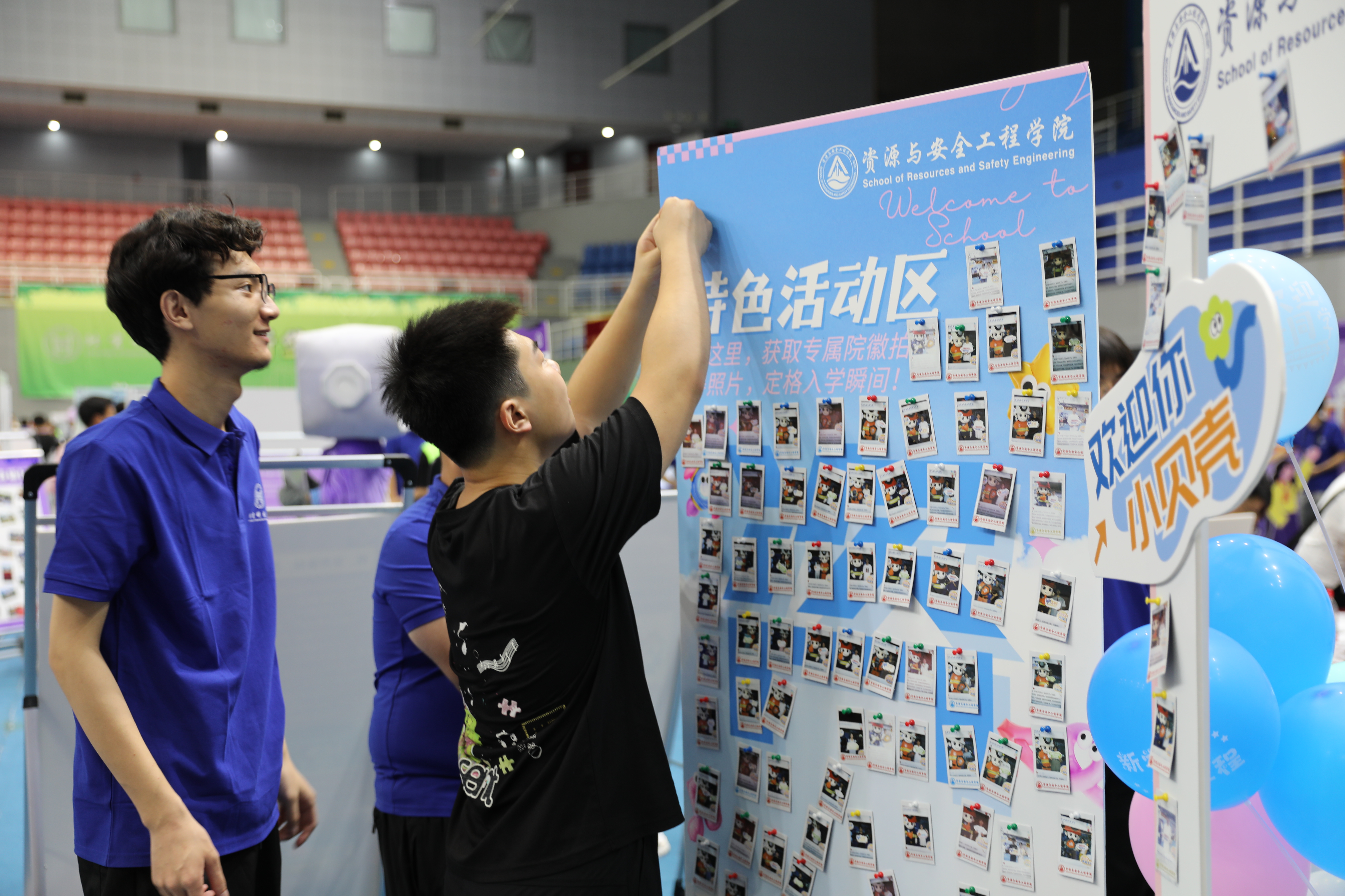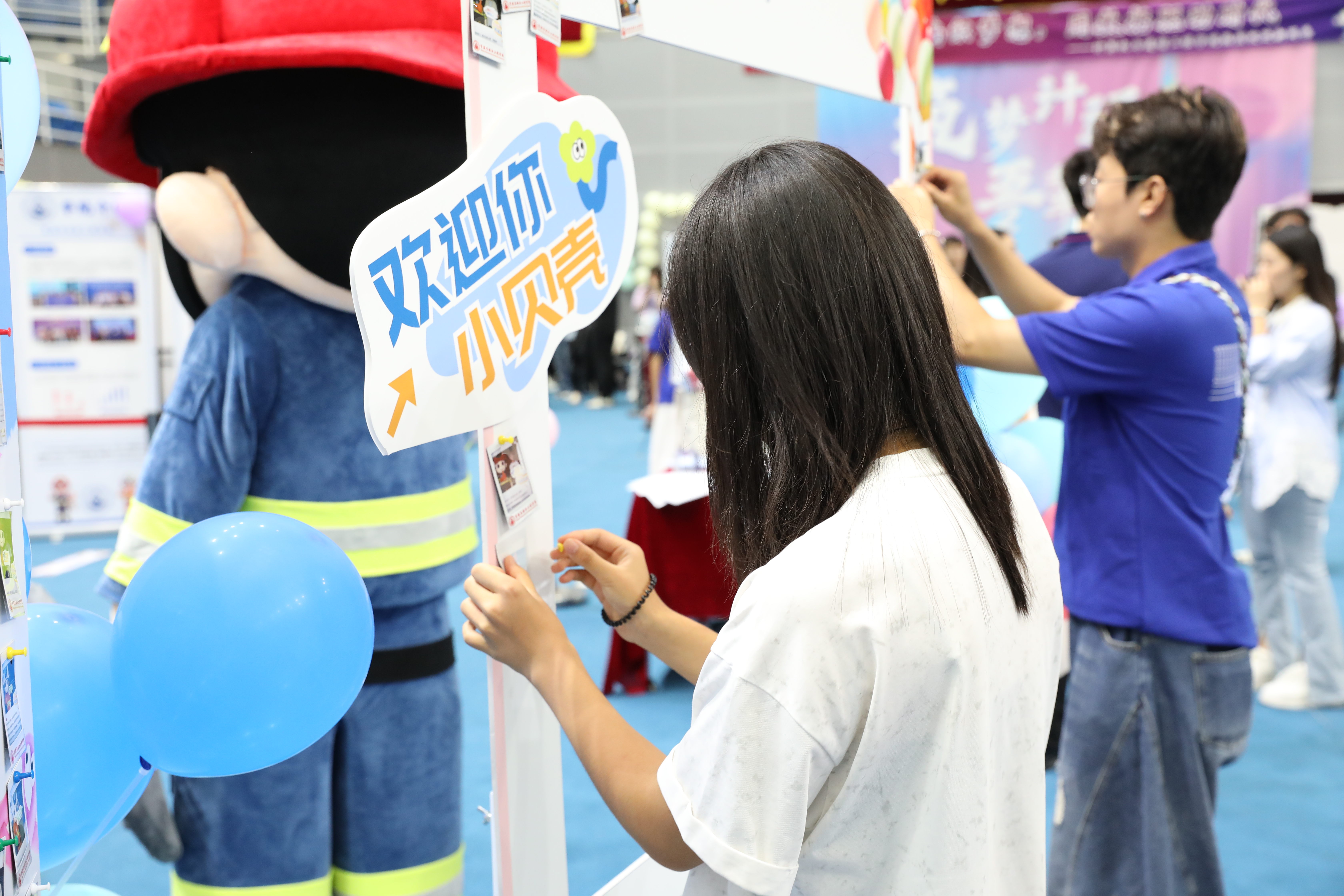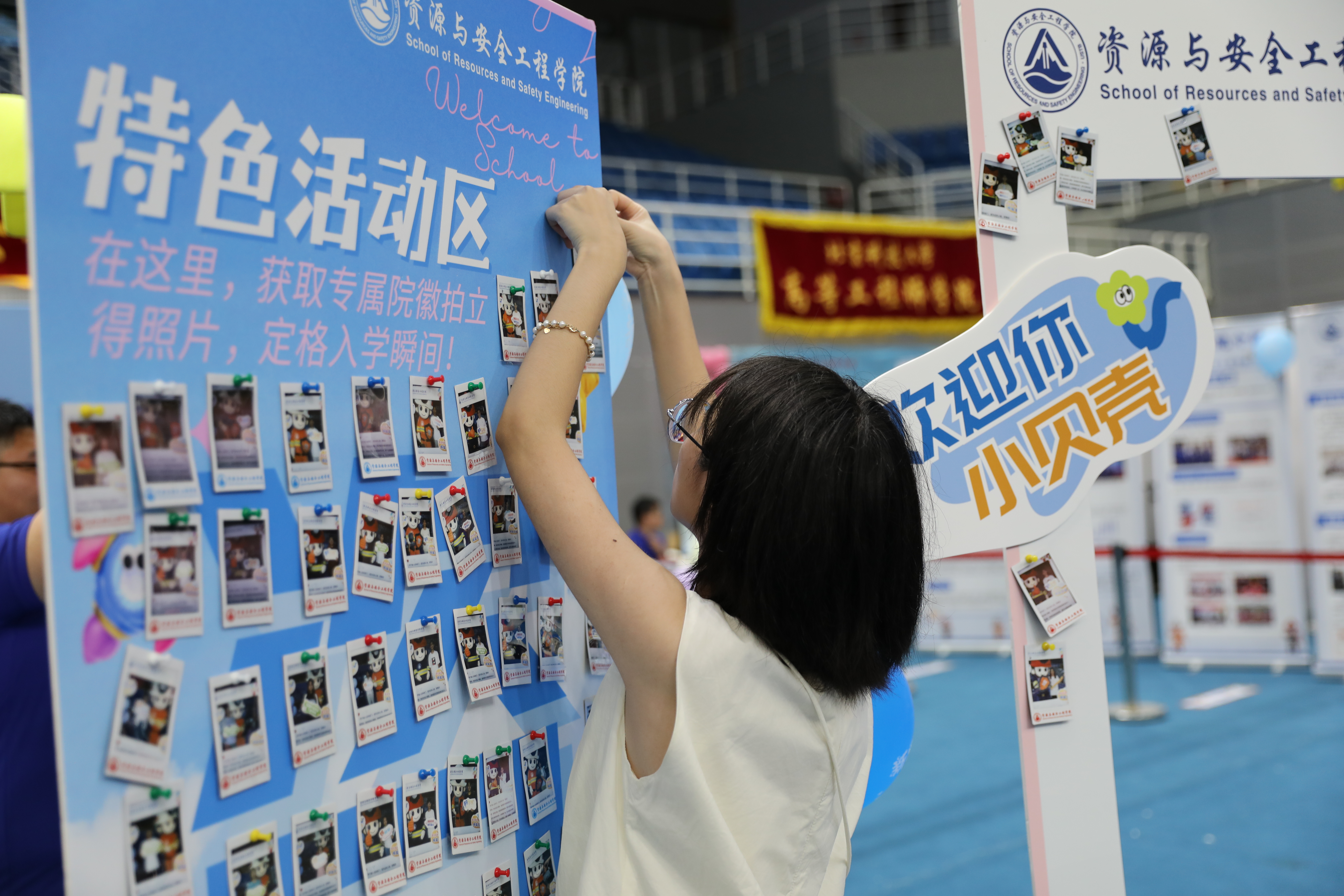 横幅随风舞动,满是对新生的诚挚欢迎。特色展布有序排列,将学院的精彩过往与独特魅力一一展现,就等小贝壳们前来开启探索之旅。