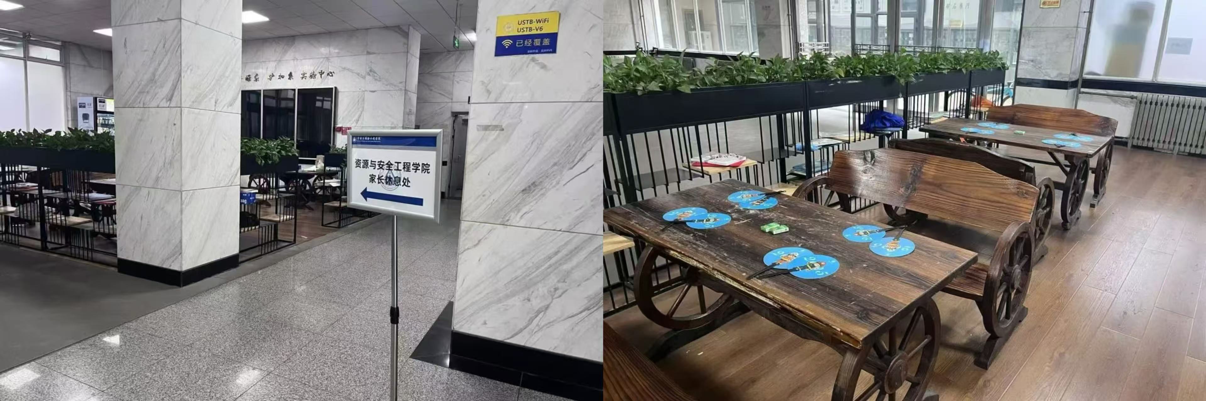学院在土环楼一层大厅贴心设置家长休息区,为远道而来的家长们提供一片惬意歇脚地。
