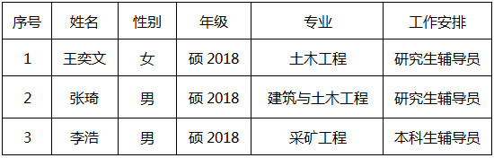 以上人员经过报名材料初审、笔试和面试等环节,进入2019年土木与资源工程学院兼职辅导员招聘拟录取名单,实习考察期3个月,如经考察合格,计划于2019年9月正式上岗。