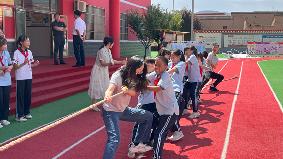 签约仪式结束后,梯队党支部4位党员同志带领王尹中心小学的同学们开展了一堂“我的大学”认知课程,通过趣味运动及课堂教学,带领同学们体验和分享自己的大学生活,孩子们积极参与,踊跃表达。