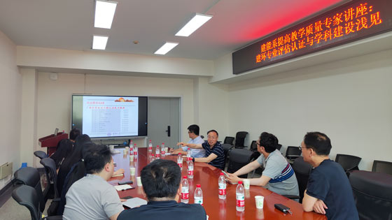 随后,李先庭进行了报告。报告首先介绍了建环专业评估工作的由来、雏形、正式开展、调整和目前实施情况,以及一流专业建设点与专业评估认证的关系,让教师们对认证有了总体的认识。其次,重点介绍了专业认证的学生中心、结果导向、持续改进的核心理念;强调了国际等效的工程认证能力框架,即学生毕业要求12条;详细分析了“课程—毕业要求—培养目标”三者的逻辑关系,指出培养方案应以学生能力为最终目标,做好顶层设计,将职业能力的培养有机分解到每门课程当中。李教授还指出了近年来专业评估暴露的8类问题,提醒应提前谋划,开展一个周期的持续建设,建立起行之有效的教学体系,并持续改进。