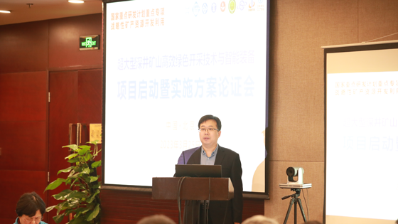 实施方案论证会由专家组组长谢和平院士主持。项目负责人杨小聪研究员从项目背景、项目目标与技术路线、任务设置与研究方案、考核指标与预期成果、管理制度与风险分析等方面进行了详细汇报。中钢集团马鞍山矿山研究总院股份有限公司郭金峰教授、矿冶科技集团有限公司矿山所于世波教授级高工、北京科技大学尹升华教授、中国矿业大学(北京)秦跃平教授、中南大学王李管教授5位课题负责人依次介绍课题实施方案及已取得的工作进展等内容。
