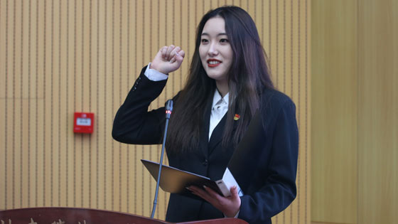 随后,院学生会主席刘曌慧带领全体到场学生进行《课堂听课及教室学习文明公约》宣誓。整齐的誓言展现了土资学子严谨治学、刻苦钻研的决心,土资学院全体师生将共创文明学习环境,树立“文明课堂我先行”的榜样。