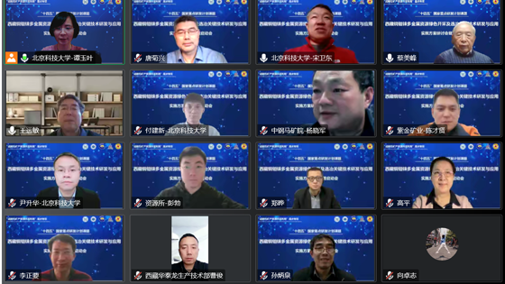 2022年12月8日下午,由宋卫东教授负责的“十四五”国家重点研发计划课题《西藏铜钼铼多金属资源绿色开采及选冶关键技术研发与应用》实施方案研讨会暨启动会以线上会议的形式在京成功召开。中国工程院院士蔡美峰、王运敏,原自然资源部科技发展司高平、项目首席科学家唐菊兴、长春黄金研究院总经理郑晔、北京科技大学土木与资源工程学院院长尹升华应邀出席。