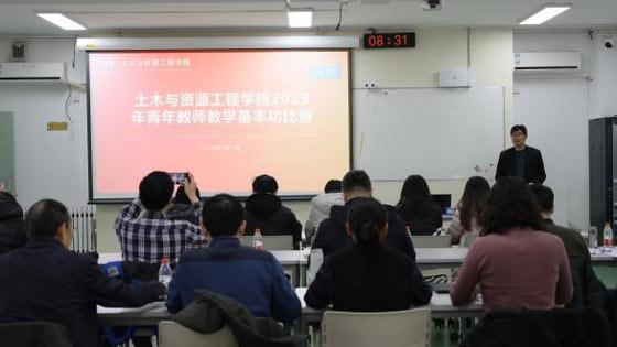 为进一步提高学院青年教师教学能力和水平,搭建青年教师学习交流平台,发掘新一代优秀青年教学骨干,2023年2月17日,土资学院分工会和教师(教学)发展中心联合组织举办土木与资源工程学院第十三届青年教师教学基本功比赛。学院院长苗胜军、党委书记耿倩男,校督导组专家代表以及院、系班子成员参加了本次活动并担任教师评委,来自不同专业的5名学生担任学生评委。比赛由学院本科生教学副院长刘洋主持。部分青年教师参加了教学比赛观摩。