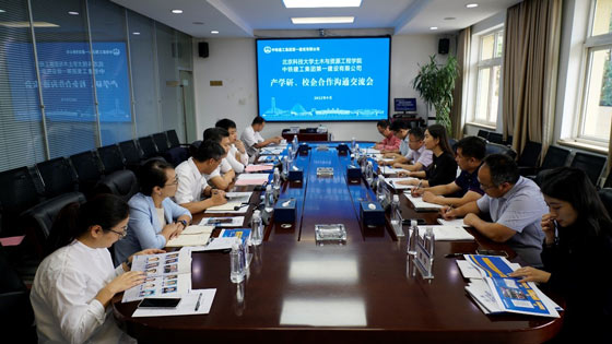 为深入贯彻落实党中央、国务院关于高校毕业生就业工作的相关决策部署,进一步深化产学研深度融合,促进学生实习实践及就业发展,开展“百企千人·访企拓岗”促就业专项行动,9月19日,土木与资源工程学院院长尹升华、书记耿倩男带队前往中铁建工集团第一建设有限公司走访交流。中铁建工集团第一建设有限公司总经理曾科斌,党委书记江炳堃,总工程师蔡文刚,副总经理魏永刚,管理副总监张群,技术中心主任黄璞,人力资源部长李娜,技术中心副主任宋永涛,雄安经营开发中心总经理何涛,我院副院长刘洋,副书记于宝库,土木系副主任李远、郭奇峰,就业指导教师郭宁共同参加活动。
