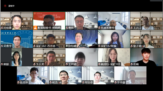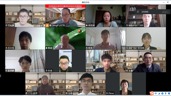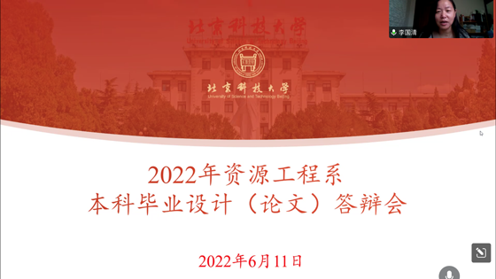 2022年6月11日,北京科技大学资源工程系2022届本科生毕业设计(论文)答辩会在线上举行,土木与资源工程学院副院长、资源工程系主任金爱兵教授、系书记李国清教授、教学督导明世祥教授以及全体毕业设计指导教师和18级本科生参加了答辩会。会议由资源工程系副主任赵怡晴主持。