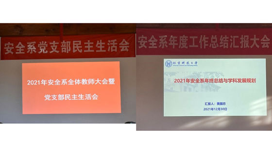 2021年12月30日,安全科学与工程系组织召开党支部民主生活会暨全体教师大会。北京科技大学校长杨仁树,校工会常务副主席贾水库,大安全科学研究院常务副院长金龙哲,数理学院党委书记张俊燕,新金属材料国家重点实验室党委书记张甜,土资学院院长尹升华,党委书记苗胜军,副院长金爱兵、刘洋、邓波、于宝库,院长助理宋大钊、大安全科学研究院副院长章立军、王辉,大安全科学研究院副院长、安全系书记黄国忠,主任张英华,副主任黄志安,副书记高娜以及安全系全体教师、学院实验中心安全实验室相关教师出席了会议。