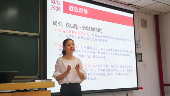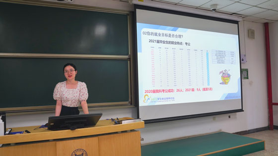 活动初始,胡琳茹老师指出目前毕业生面临毕业和就业双重压力,就业存在一定阻碍,困难和机遇是并存的。她详细地分析了目前就业形势,提出“这是一个最坏的时代”同时也是“一个最好的时代”。目前就业形势不稳定因素较多、结构性矛盾突出,经济发展面临较大压力;但应届生招聘形式多元化、应届优势明显和体制内岗位大幅度扩招,这给应届毕业生提供了多种类选择机会。最后胡琳茹提醒毕业生应明晰就业环境,把握相关就业政策,要扩展就业思路,积极提高求职技能,做好充分的求职准备。
