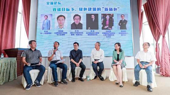 北京科技大学朱维耀教授、清华大学张悦教授、当代置业执行董事兼首席技术官陈音先生、中国房地产业协会人居环境委员会朱彩清秘书长、北京柠檬树绿色建筑科技有限公司黄俊鹏总经理以及第一人居董事长贾岩先生参加了本次论坛交流环节。交流环节旨在聚焦双碳目标下,绿色建筑的新角色。各位嘉宾从建筑行业推动低碳技术的发展,清洁低碳能源的高效利用以及双碳目标下建筑行业产业链构建等多方面展开了交流与沟通。