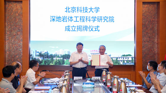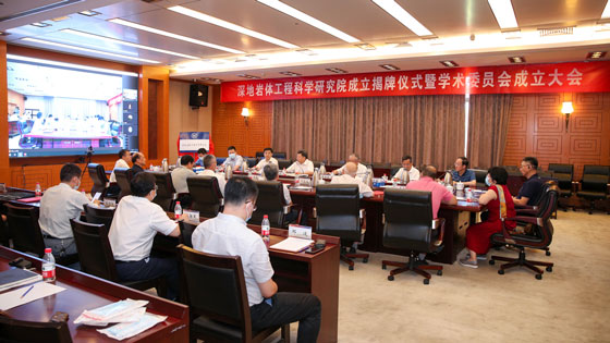 7月31日上午,北京科技大学“深地岩体工程科学研究院”成立揭牌仪式暨学术委员会成立大会在办公楼306会议室举行。中国工程院院士、深圳大学土木与交通工程学院院长陈湘生、北京中煤矿山工程有限公司研究员刘志强、我校校长杨仁树、中国工程院院士蔡美峰、中国工程院院士岳清瑞、副校长张卫冬、原副校长吴爱祥出席了仪式。纪洪广、乔兰、马飞、汪林兵等教师代表以及相关职能部门、教学科研单位负责人参加了仪式。