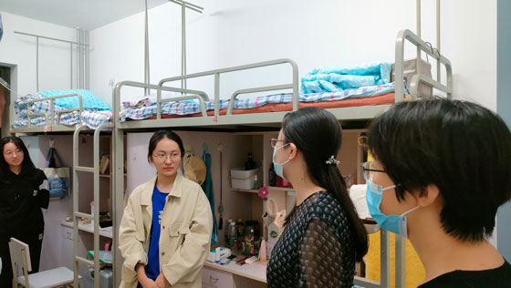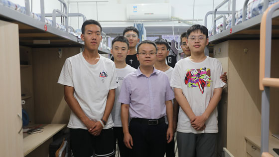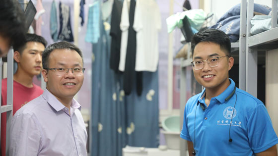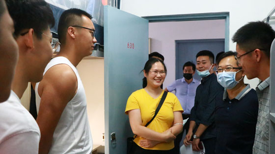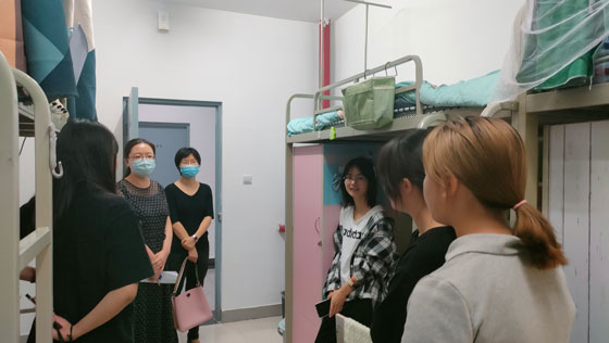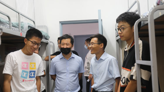 学院领导对学院本科新生宿舍逐一走访,并与刚入住的新生进行亲切交谈。通过与学生的交流了解学生入学之初的基本情况,并对他们的饮食习惯、住宿条件和是否适应大学生活与集体宿舍生活表示了关心。院领导和各位班主任老师结合自身学习成长经历,与新生们分享了更好更快适应大学生活的心得,鼓励他们认真学习,让新生们对将来的学习生活有了更大的信心。