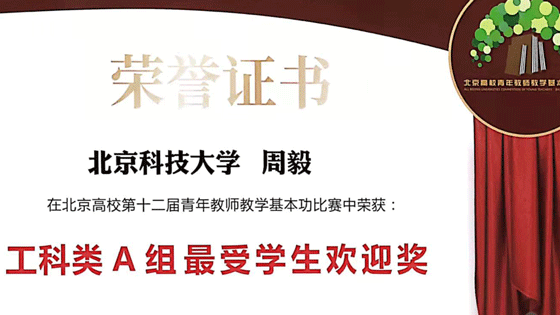 其中,土木工程系青年教师、周毅副教授荣获该项比赛工科类A组一等奖、工科类A组最佳现场展示奖、工科组A类最受学生欢迎奖;土木工程系主任李长洪教授,土木工程系教师张举兵副教授荣获工科类A组优秀指导教师奖。