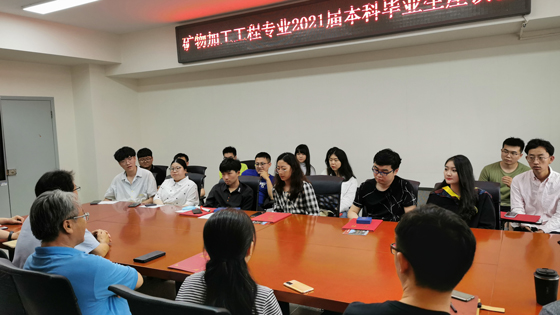 2021年6月25日下午,北京科技大学矿物加工工程系2021届本科毕业生座谈会在土木楼214会议室举行,矿物加工工程系主任孙春宝、系书记李正要、系副主任傅平丰、寇珏,以及胡文韬、张瑞洋、常志勇、李东、李根壮几位教师代表以及矿物加工工程系全体本科毕业生出席此次活动。活动由矿物加工工程系书记李正要主持。
