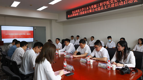 为深入学习贯彻习近平总书记在党史学习教育动员大会上的重要讲话精神,落实全国教育大会、高校思想政治工作会议和学校思想政治理论课教师座谈会部署,扎实推进“永远跟党走”主题教育,切实增强学生党员的创造力、凝聚力、战斗力,激励党员队伍以实际行动庆祝中国共产党成立100周年,北京科技大学土木与资源工程学院硕2007党支部、本18党支部与北京金港场道工程建设有限公司第一、第二党支部开展红色“1+1”共建活动。6月23日上午,北京金港场道工程建设有限公司党总支与北京科技大学土木与资源工程学院党委共建活动启动会在土资楼214会议室举行。
