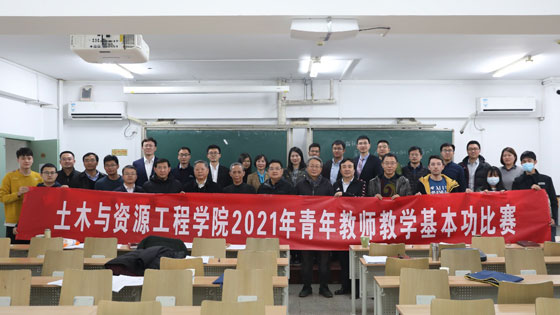 2021年3月1日,土木与资源工程学院在土木楼201教室举办了2021年青年教师教学基本功比赛。经过5个系和实验中心的初赛选拔,共有15位老师参加了院级比赛。本次比赛评委由校督导组蔡嗣经老师、明世祥老师,学院督导组陈广平老师,学院副院长李长洪、宋卫东、尹升华、邓波,5位系所领导以及5名本科生代表担任。比赛由副院长邓波主持。