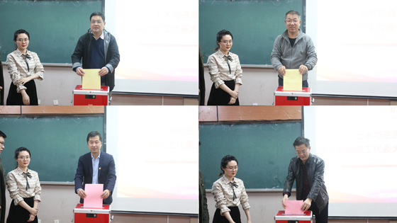 随后,大会听取了第七届教代会代表、工会委员候选人情况并审议通过了《土木与资源工程学院教职工代表大会代表及工会委员选举办法》及监票人、计票人建议人选名单。大会投票环节由总监票人刘淑华老师主持。会上,按照《选举办法》的流程,全体与会代表严格按照换届程序对正式候选人通过无记名投票等额选举的方式进行了投票。