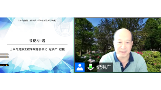 9月19日上午,北京科技大学土木与资源工程学院2020级本科新生开学典礼以线上的形式在腾讯会议顺利举行。院长金龙哲、学院党委书记纪洪广、副院长乔兰、李长洪、宋卫东、尹升华,副院长、党委副书记邓波,以及各系所主要负责人、教师代表、辅导员、老生代表以及300余名本科新生共同参加了开学典礼。典礼由邓波老师主持。