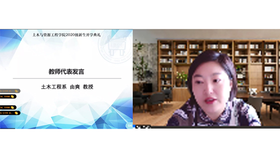 之后,土木工程系由爽教授作为本科教师代表进行致辞。在同学们开启新征程之际,她希望大家深入思考如何成为一个真正优秀的大学生。紧接着她分享了自己的感想:第一,积极面对挫折,并在战胜挫折的过程中成长;第二,树立明确的目标,选择自己的人生方向。最后她表达了自己的心愿:愿新生们沐浴阳光,健康成长;学习进步,发愤图强;不畏艰难,一如既往。