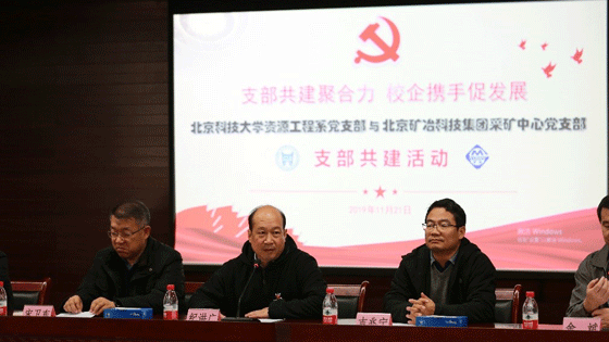 为进一步探索新形势下党建工作的新思路、新途径、新方法, 2019年11月21日,北京科技大学土木与资源工程学院资源工程系党支部与北京矿冶科技集团有限公司矿山工程研究所采矿中心党支部结对共建,开展了“支部共建聚合力、校企携手促发展”的系列活动。我院党委书记纪洪广教授,副院长宋卫东教授、尹升华教授,矿冶集团党委办公室主任、宣传部部长吉兆宁,组织部党建教育处处长肖华薇,矿山所党总支书记余斌出席了本次活动,两个支部共四十余位党员参加了活动。