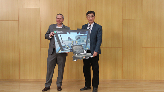 随后,安百拓中国区总裁Brian Doffing和土木与资源工程学院院长金龙哲作为双方代表完成了采矿设备捐赠仪式。