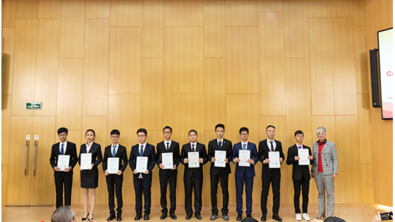 何民庆校长、Brian Doffing总裁、Sofie Gielen总裁分别向获得奖学金的同学代表颁发荣誉证书。