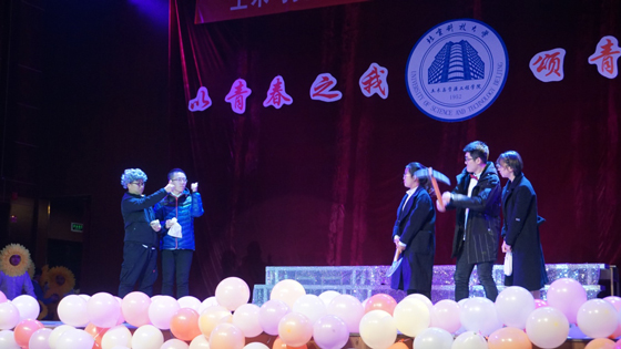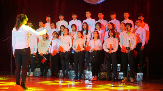 矿加硕1905班的同学们用一首《国家》唱出了这七十年的披荆斩棘、昂首奋进,而《仰望星空》表达他们对未来的美好憧憬。一段《青春“wu”歌》诙谐与精湛并存,活泼与团结共显。