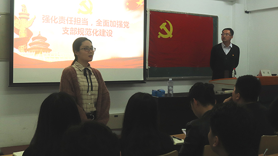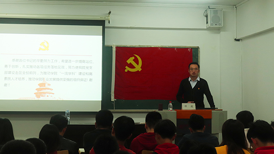 在培训会上,邓老师对如何强化责任担当,全面加强党支部规范化建设进行了讲解与部署。他谈到,高等教育的发展关系国家的前途和命运,学生党员要坚定不移地跟党走,支部书记要以身作则,提高思想觉悟,充分发挥先锋模范作用,不断提高履职能力,全面推进党支部规范化建设。他还要求各支部书记要深刻认识到发展党员的重要性,按照“成熟一个,发展一个”的要求,深刻思考学生党员先进性如何体现。在党支部组织生活方面,他强调支部书记要充分利用好“一规一表一册一网”,积极构建党支部规范化建设工作体系,积极组织党员开展卓有成效的党建活动,践行社会主义核心观。最后,他介绍了党支部规范化建设的重点任务和有关要求,要求支部书记要严格执行党的组织生活制度,强化对党员的管理教育,切实把党支部建设成为坚强的战斗堡垒。